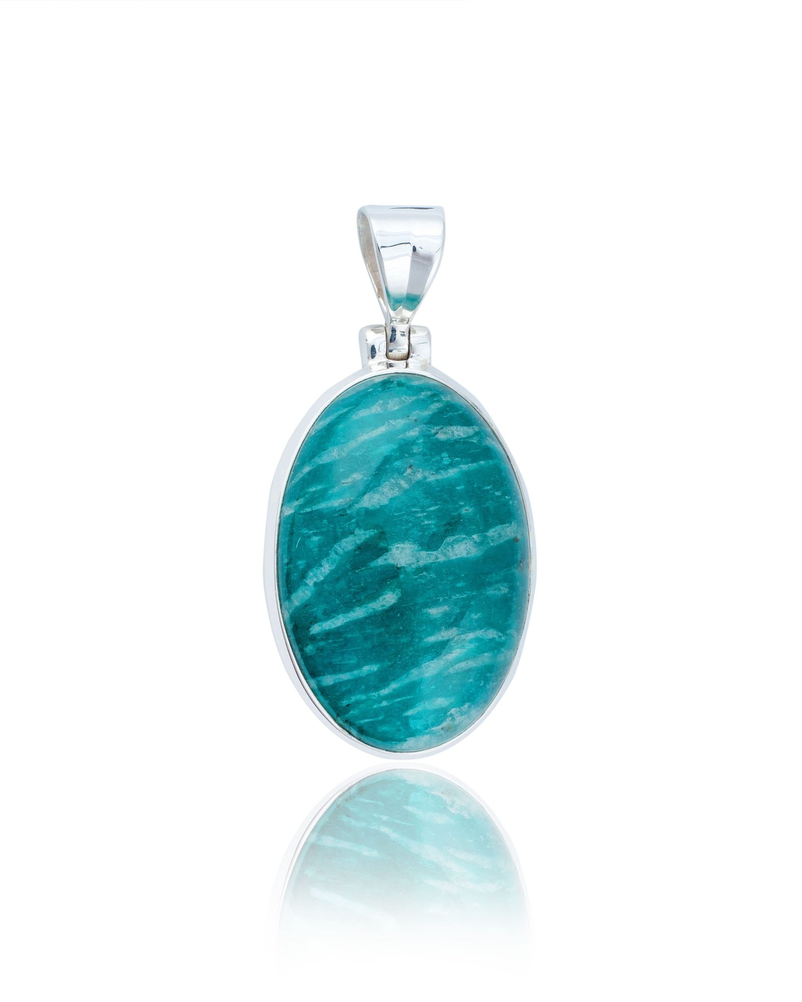 The pairing of Amazonite with sterling silver is a harmonious blend of beauty and durability. Sterling silver, known for its bright, reflective sheen and hypoallergenic properties, provides a stunning backdrop for the gemstone. Its cool, neutral tones enhance the vibrant colors of Amazonite without overpowering them, allowing the gem to take center stage. The durability of sterling silver also ensures that your pendant will be a cherished piece for years to come.