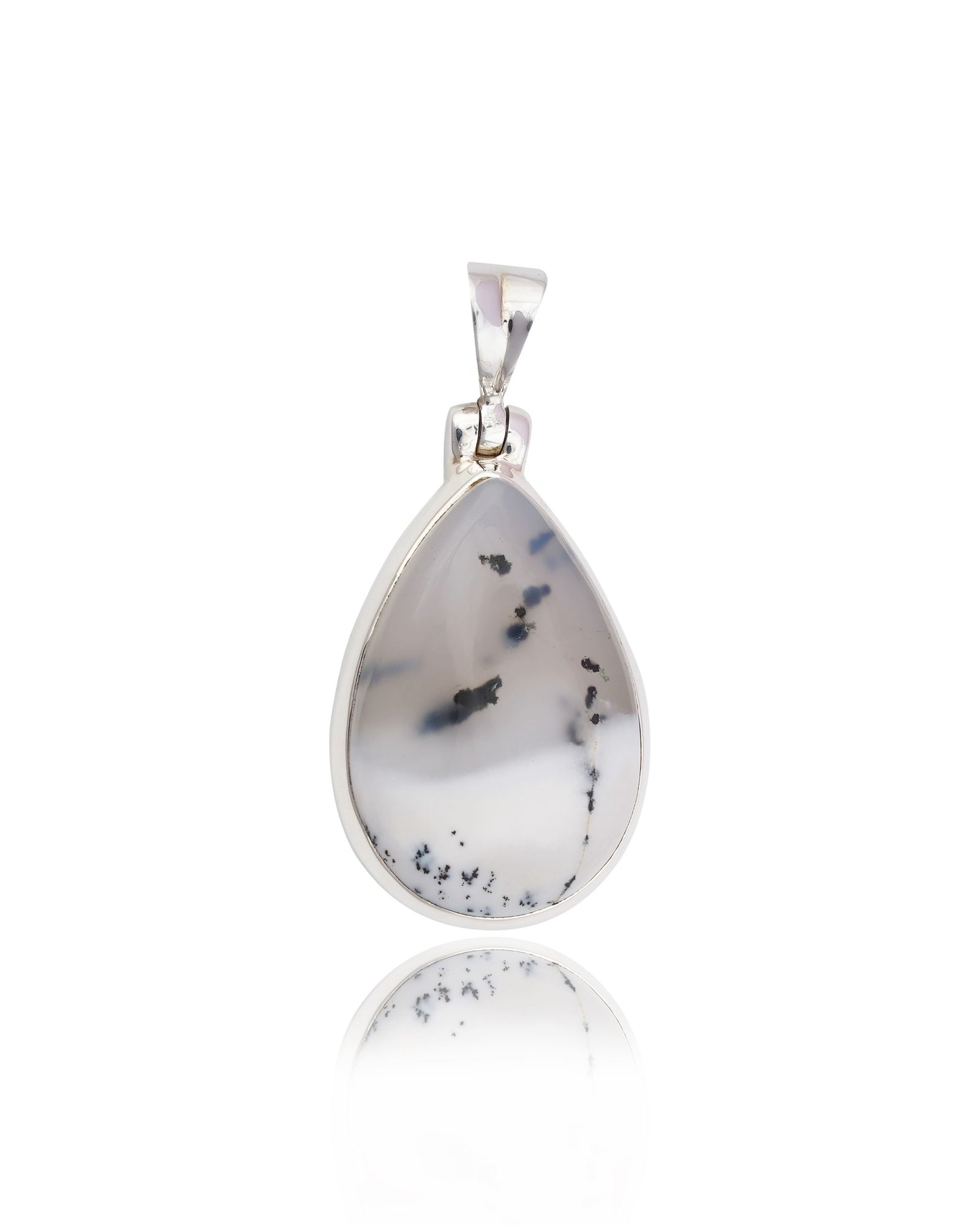 Dendritic Agate features unique tree-like patterns that give a glimpse into nature. These designs often look like ferns, trees, or landscapes and form through manganese or iron oxide deposits within the agate, making each piece of art one-of-a-kind. No two pendants are alike.