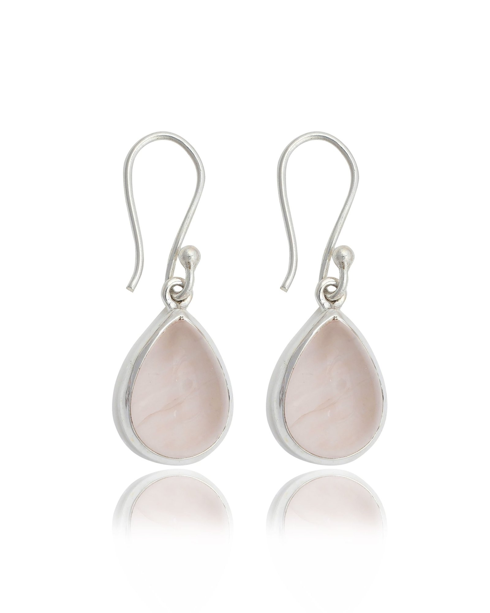 Embrace Gentle Beauty: The Rose Quartz Cabochon Sterling Silver Earrings from Aditya Gems International