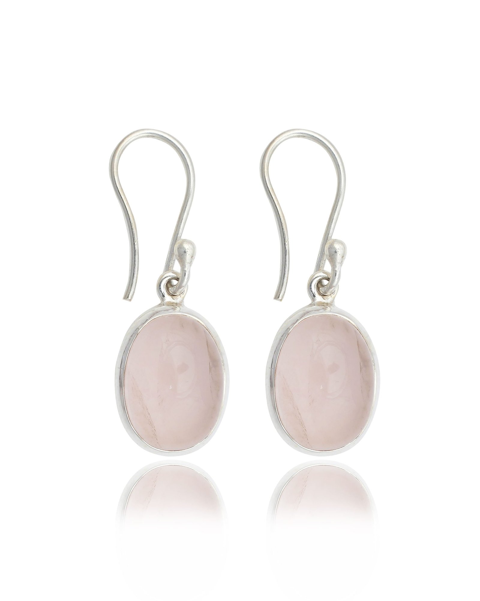Embrace Gentle Beauty: The Rose Quartz Cabochon Sterling Silver Earrings from Aditya Gems International