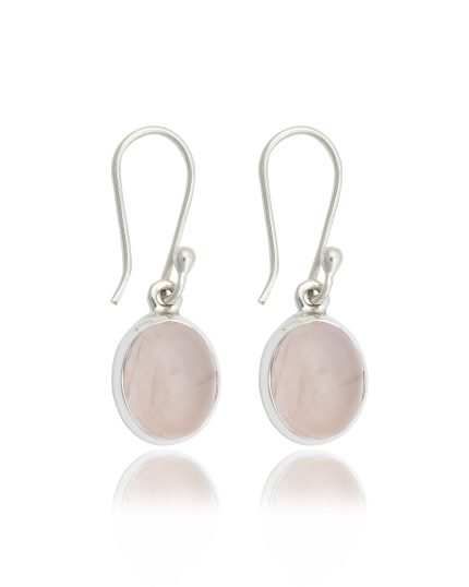 Embrace Gentle Beauty: The Rose Quartz Cabochon Sterling Silver Earrings from Aditya Gems International