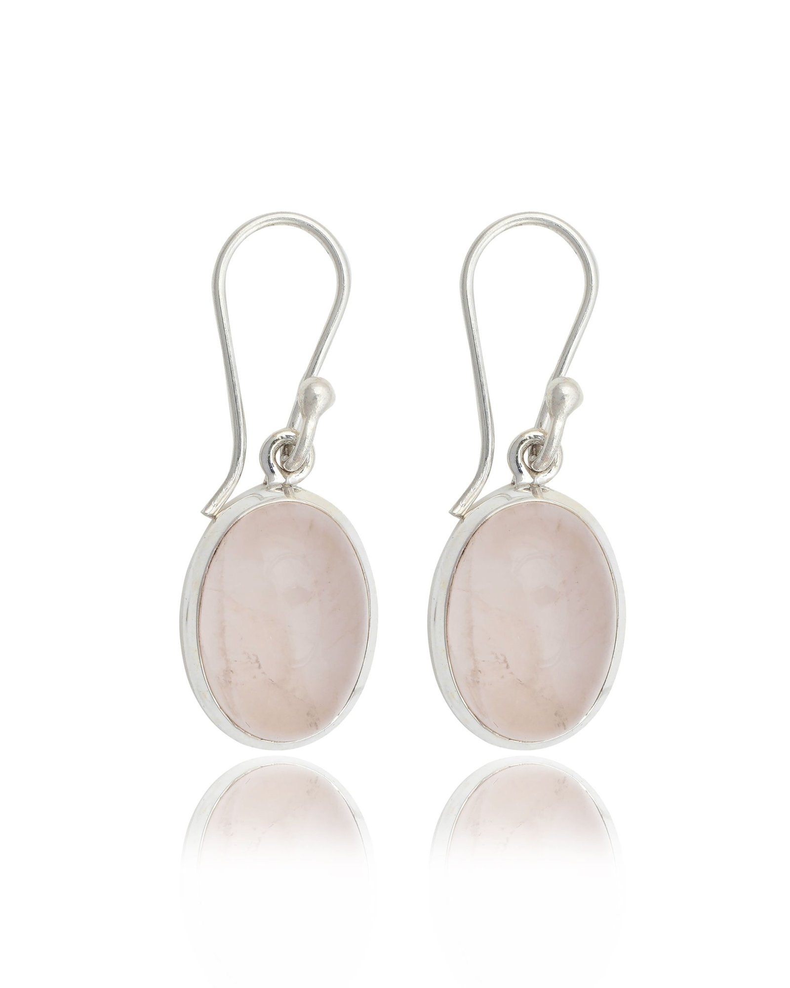 Embrace Gentle Beauty: The Rose Quartz Cabochon Sterling Silver Earrings from Aditya Gems International
